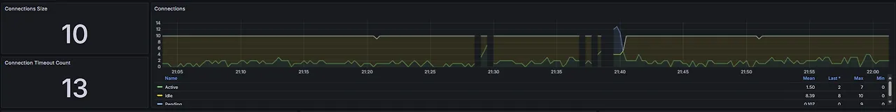 - 커넥션 풀이 active 커넥션으로 꽉찬다면 MySQL 은 기존 연산보다 2배를 더하게 되어 CPU 가 터졌다