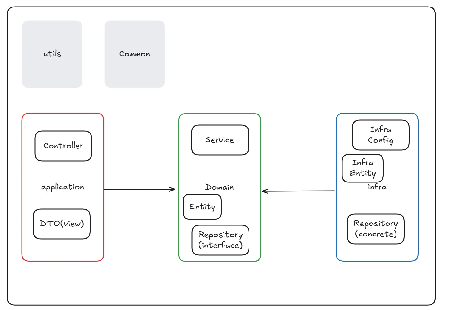 - Domain 을 모듈로 분리함으로써 Infra 와 분리된 interface 를 Infra 모듈에서 구현하도록 함